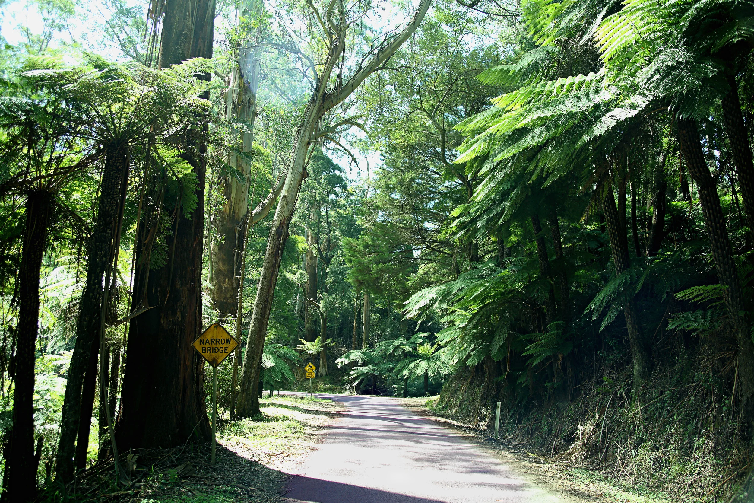 No me gustaría despedirme sin decir que la primera vez que nos metimos en esta jungla vimos un canguro en medio de todos estos arboles….pero entre la excitación de ver el primero en libertad y que la cámara estaba en foco manual la foto no quedo como para ser mostrada.